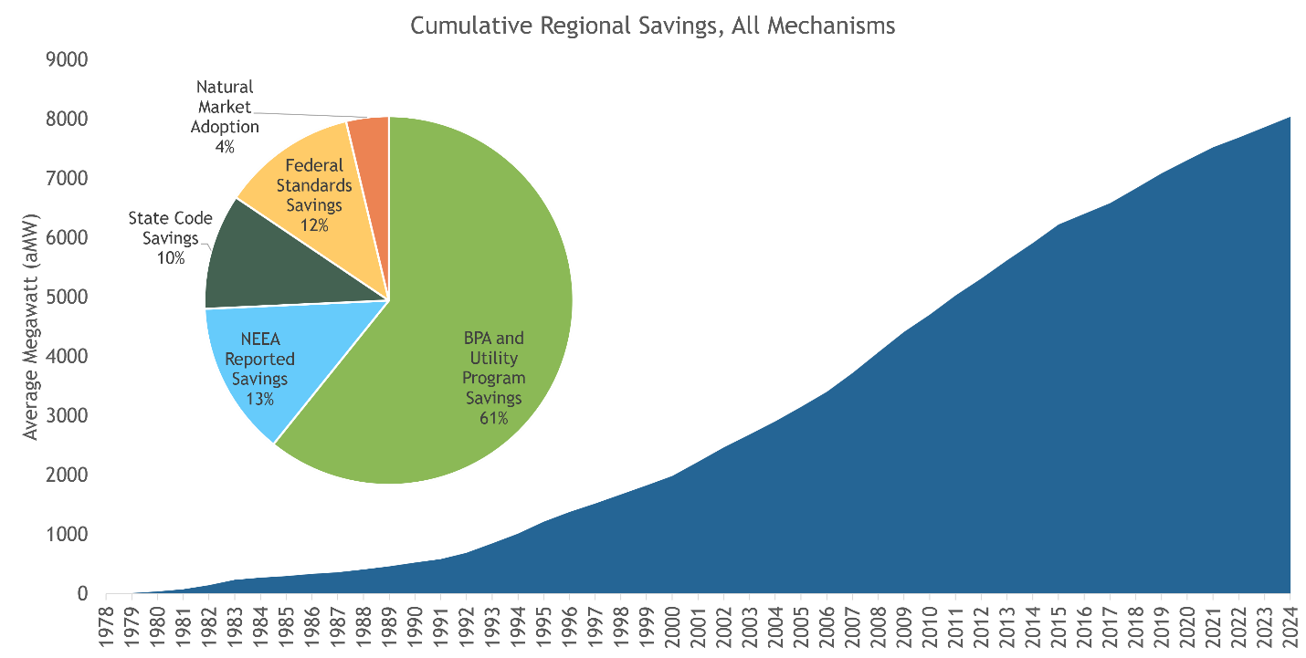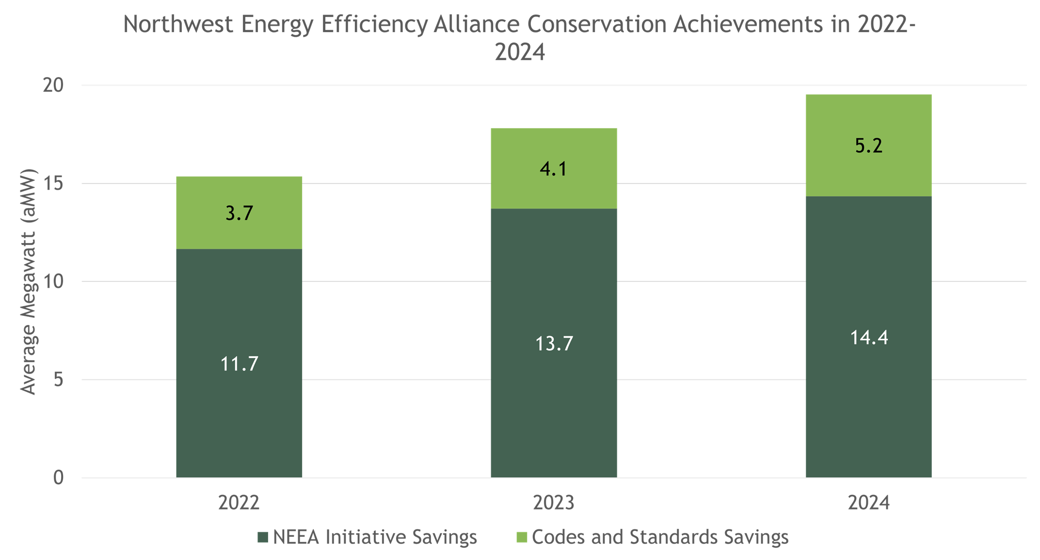 The Northwest Energy Efficiency Alliance is continuing to provide value to the region toward achieving conservation, through both its market transformation initiatives and codes and standards work. In 2024, NEEA achieved almost 20 aMW of savings.