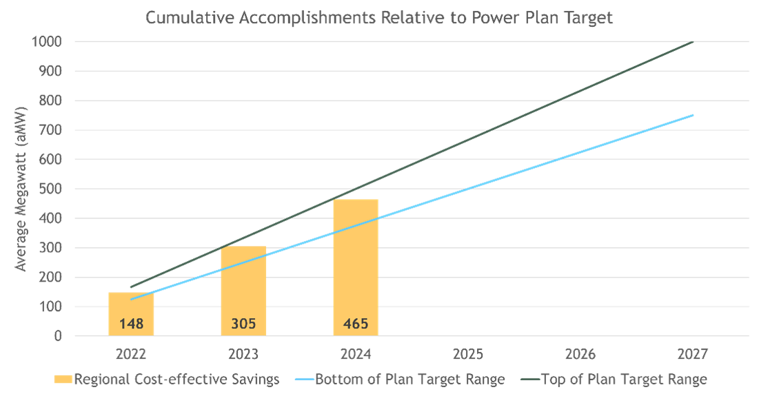 The Plan recommended that programs focus on cost-effective energy efficiency first and as we have seen there continues to be opportunities for programs in these areas. That said, the Plan also recognized that there were additional goals, customers, and markets that the region may need to pursue non cost-effective measures to continue to support that were detailed in other elements of the Conservation Program. The Plan detailed three additional areas for program to focus once they have gotten all the available cost-effective energy efficiency, including continued investment in weatherization programs, ensure customers in small and rural markets have program opportunities in residential and agricultural programs, and for jurisdictions required to pursue decarbonization that they do so efficiently. The region achieved 15 aMW in additional savings in 2024.